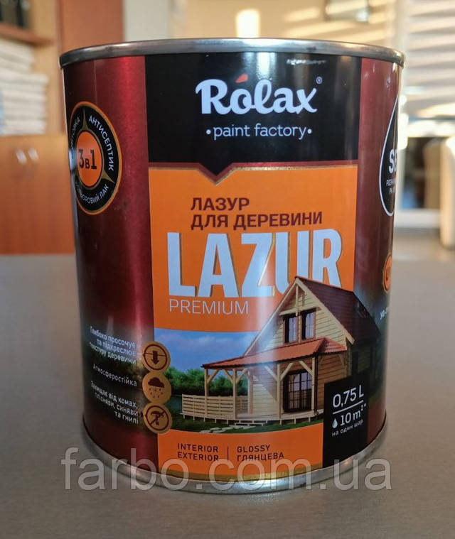 Лазур для деревини алкідна захисна глянцева 3 в 1 грунтовка антисептик декоративний лак Lazur Rolax № 105 Горіх 0.75 л